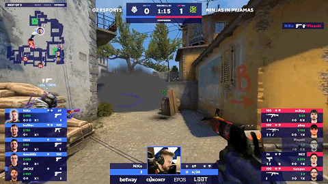 图二来到G2选择的Dust2,开局夹B的G2击杀了主B的REZ,但hampus也成功击杀一人。四打四的残局遭到了JaCkz的爆发,一人杀光NiP所有队员。轻松拿下半起与eco,但在长枪局G2遭到了NiP在A小的顽强阻击落败,但随后NiKo扛起狙击枪有突破A区完成三杀。NiP意识到问题所在很快起出双狙防守,这让G2始终难以完成突破,比分来到了5-5平。随后G2先进攻A门受阻,phzy依靠蓝车单项烟拿下首杀,但G2转头进攻中路击杀B区以及中路的三人,回防的Plopski也倒下,G2再次取得优势。但es3tag一波1v2残局似乎让人们又看到了当初的根号九爷。顺着拿下残局的气势,NiP又依靠REZ小道双杀追平比分,上半场最后一回合经济不好的G2强抢A门失败,上半场NiP以一分优势领先。